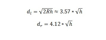 gdzie h to wysokość anteny w metrach, dₗ to odległość widoczności w kilometrach, a dᵣ to zasięg radiowy w kilometrach.